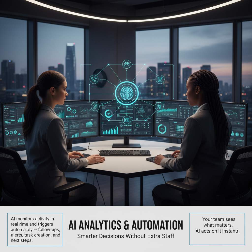 AI monitors activity in real time and triggers actions automatically — follow-ups, alerts, task creation, and next steps.